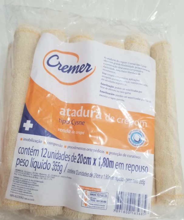 ATADURA CREPOM CYSNE CREMER 10CM X1,8M EM REPOUSO