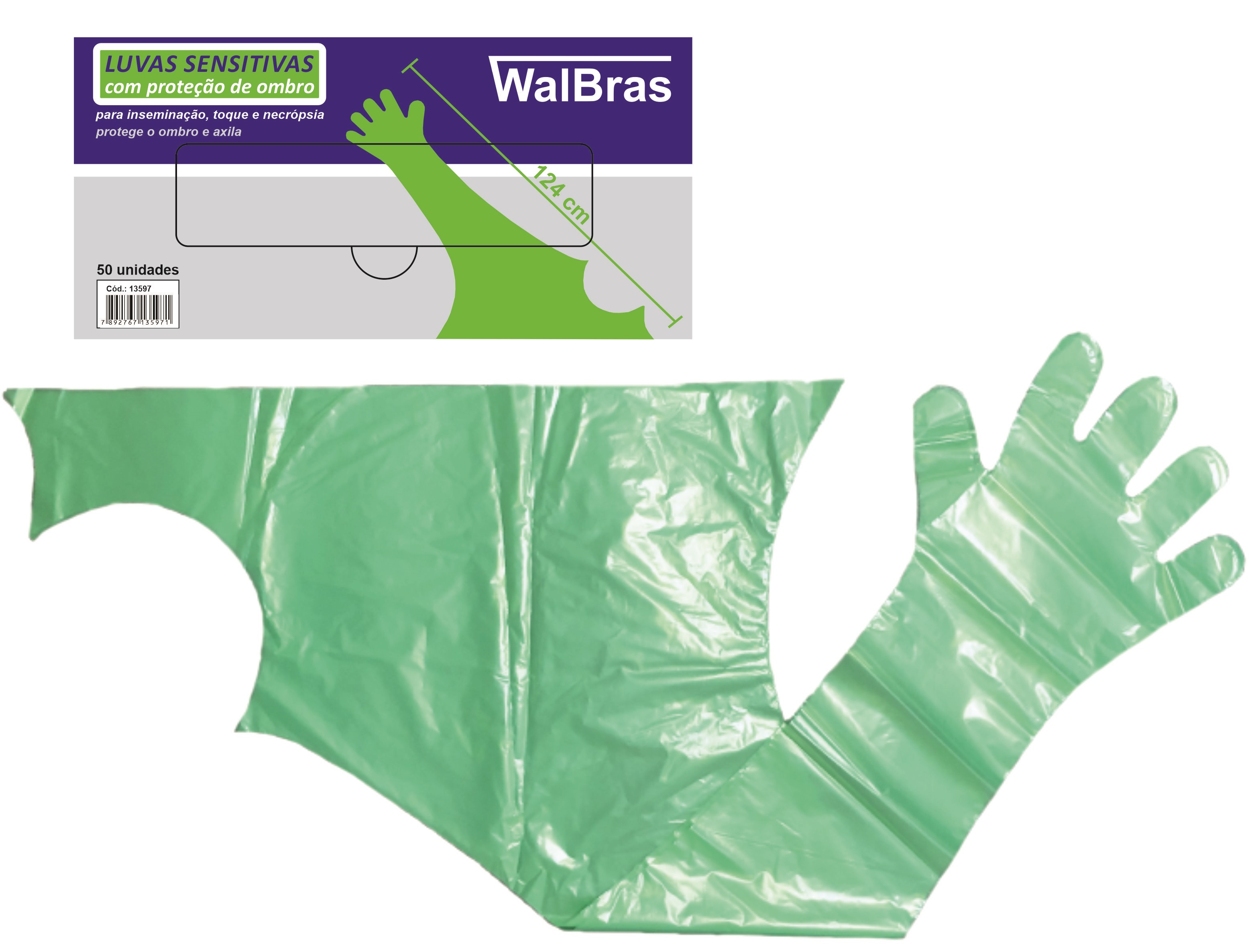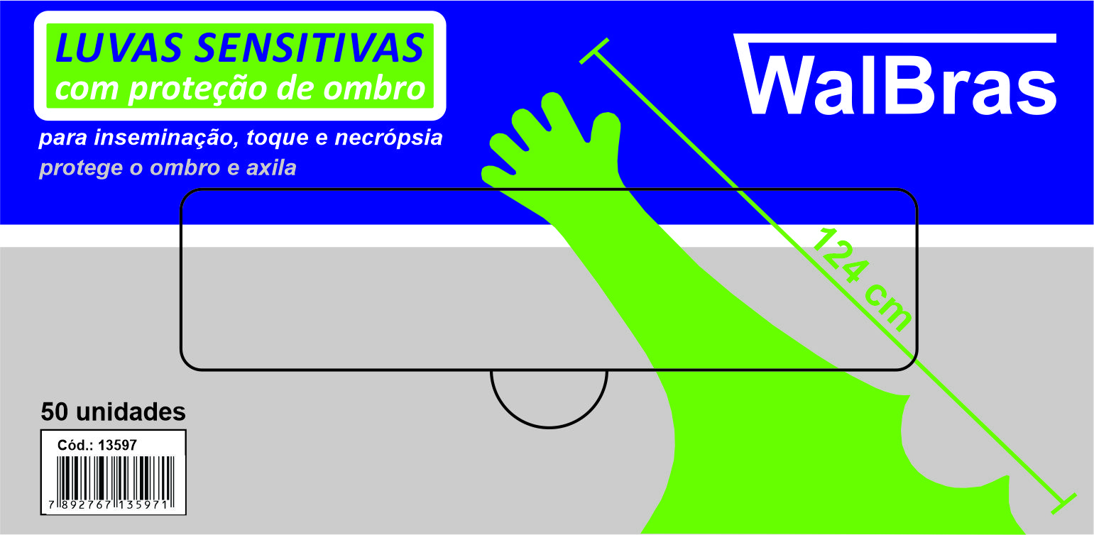 LUVAS DESCARTÁVEIS SENSITIVAS COM ELÁSTICO WALBRAS 90CM P/ INSEMINAÇÃO ARTIFICIAL E APALPAÇÃO