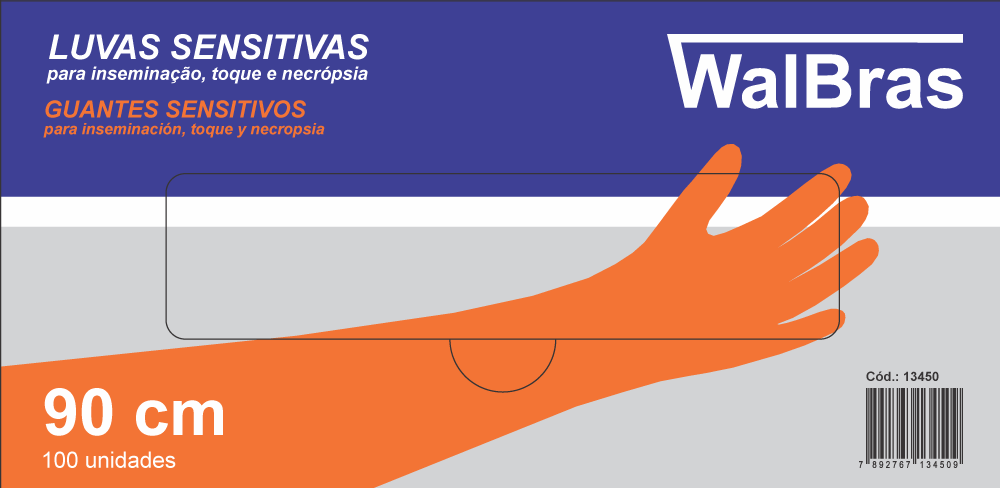 LUVAS DESCARTÁVEIS SENSITIVAS COM ELÁSTICO WALBRAS 90CM P/ INSEMINAÇÃO ARTIFICIAL E APALPAÇÃO